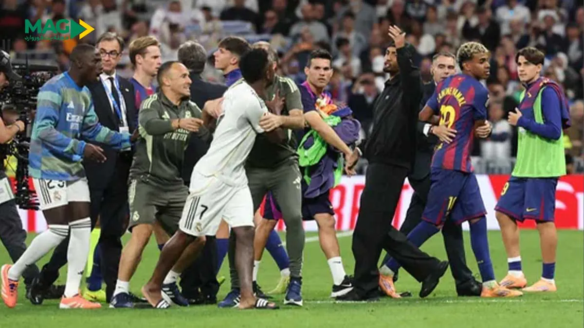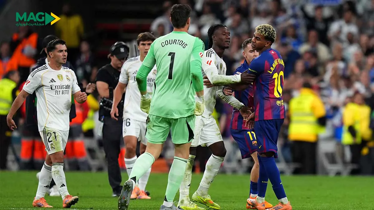 رفقا، همین که سوت پایان الکلاسیکو خورد، انگار همه تو برنابئو آماده یه مسابقه کشتی کج شدن! پدری آخر بازی اخراج شده بود، ولی شعلههای جنجال تازه داشت بالا میگرفت. وینیسیوس، با همون چهره همیشه عصبی و آماده انفجار، رفت وسط زمین، گفت «من هنوز زندهام!» از اونور یامال هم که چند روز قبل با حرفهای جنجالیش حسابی دل رئالیها رو خون کرده بود، با کارواخال درگیر شد و یه گفتگوی دوستانه به سبک «تو کی هستی که حرف بزنی؟!» شکل گرفت. کورتوا هم وسط آشوب پرید و اوضاع رو بیشتر آتیش زد.