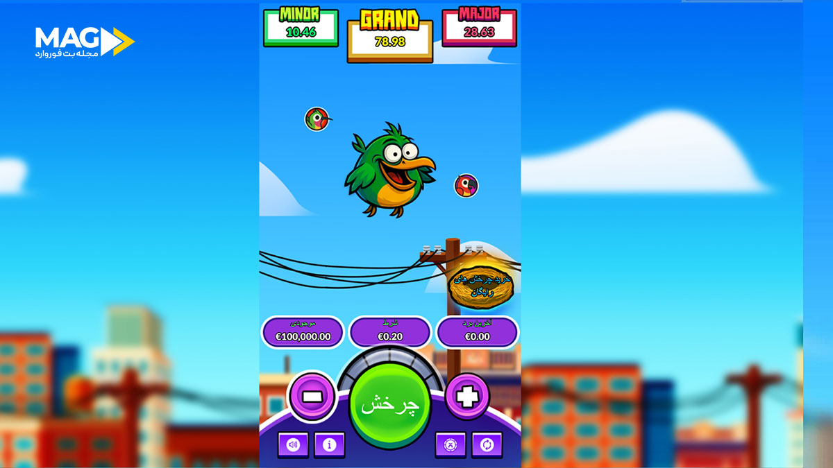 توجه داشته باشید: هر بار فشردن باعث پرواز پرنده می‌شود و شانس فعال شدن بردهای فوری یا یک جایزه بزرگ تصاعدی را به همراه دارد.