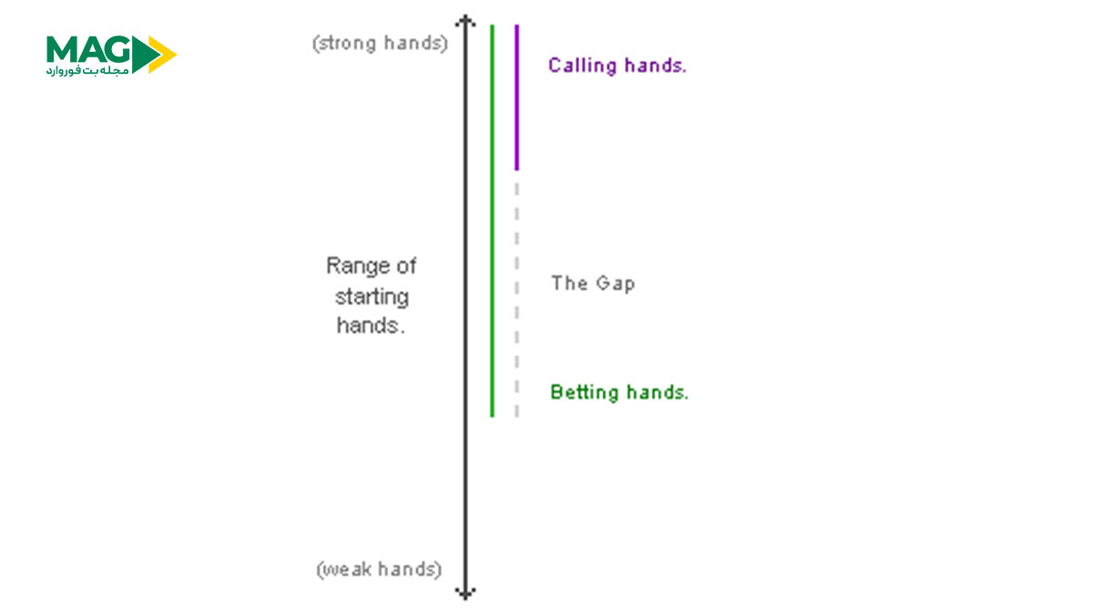 - در مقابل، اگر بازیکن افزایشدهنده آزاد (Loose) باشد، دامنه دستهای او گستردهتر است و ممکن است با کارتهای ضعیفتری هم افزایش بدهد. بنابراین «گپ» کوچکتر خواهد شد.
